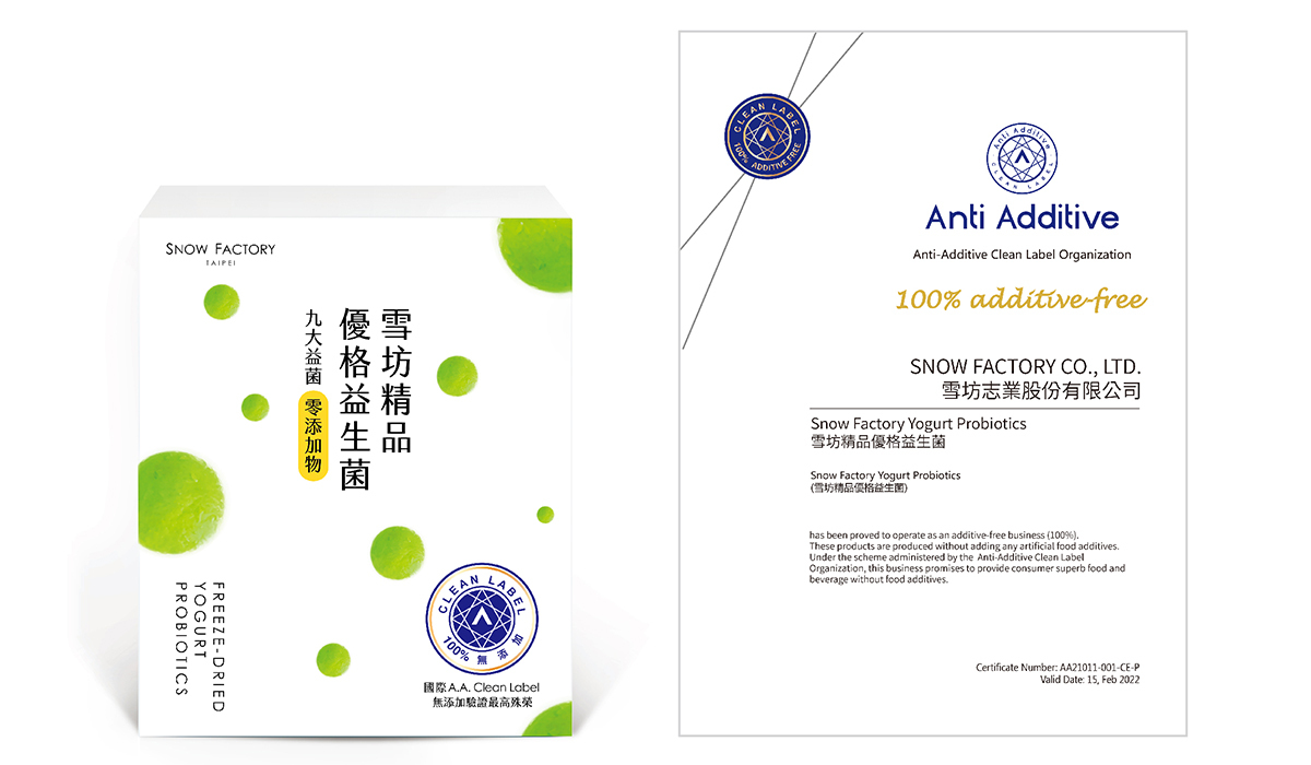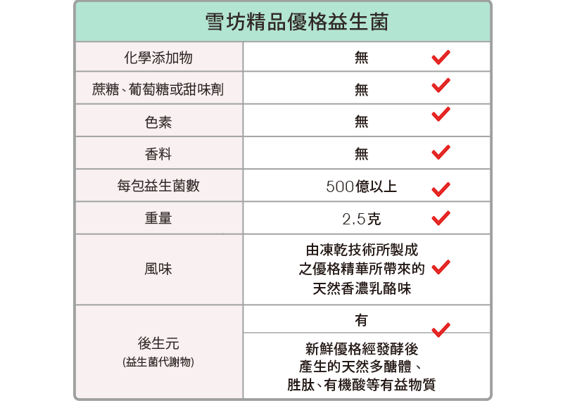 以雪坊精品優格濃縮製成、通過最高等級無添加驗證的益生菌 。