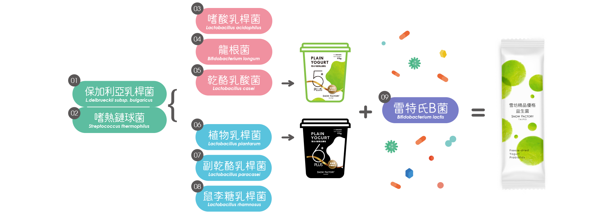5號+6號優格的經典菌種+雷特氏B菌=九大益菌。