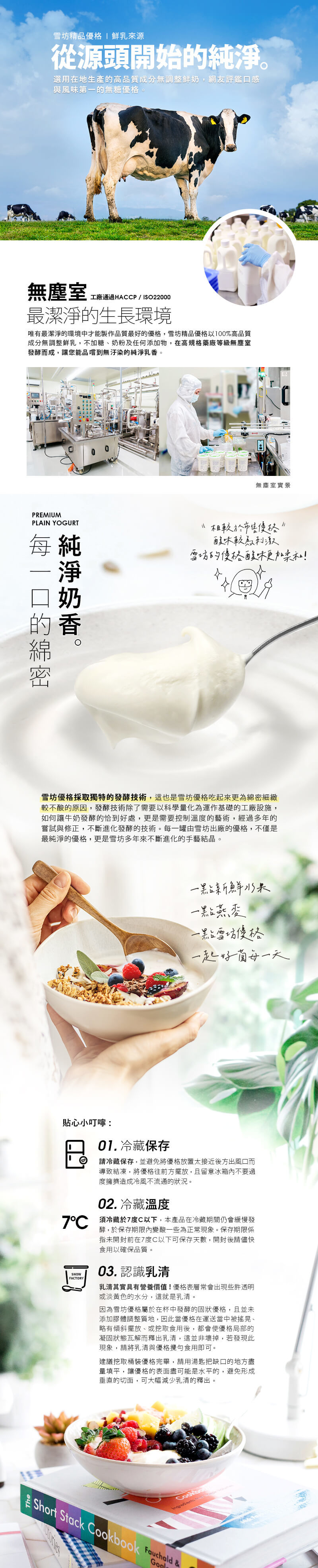 ● 採用高品質鮮乳製作優格,並由台大管理團隊指導發酵技術,以獨創的黃金發酵方法,讓優格略帶微酸而不過於刺激嗆口,讓消費者在品嚐後即愛上的滑順細膩口味。
